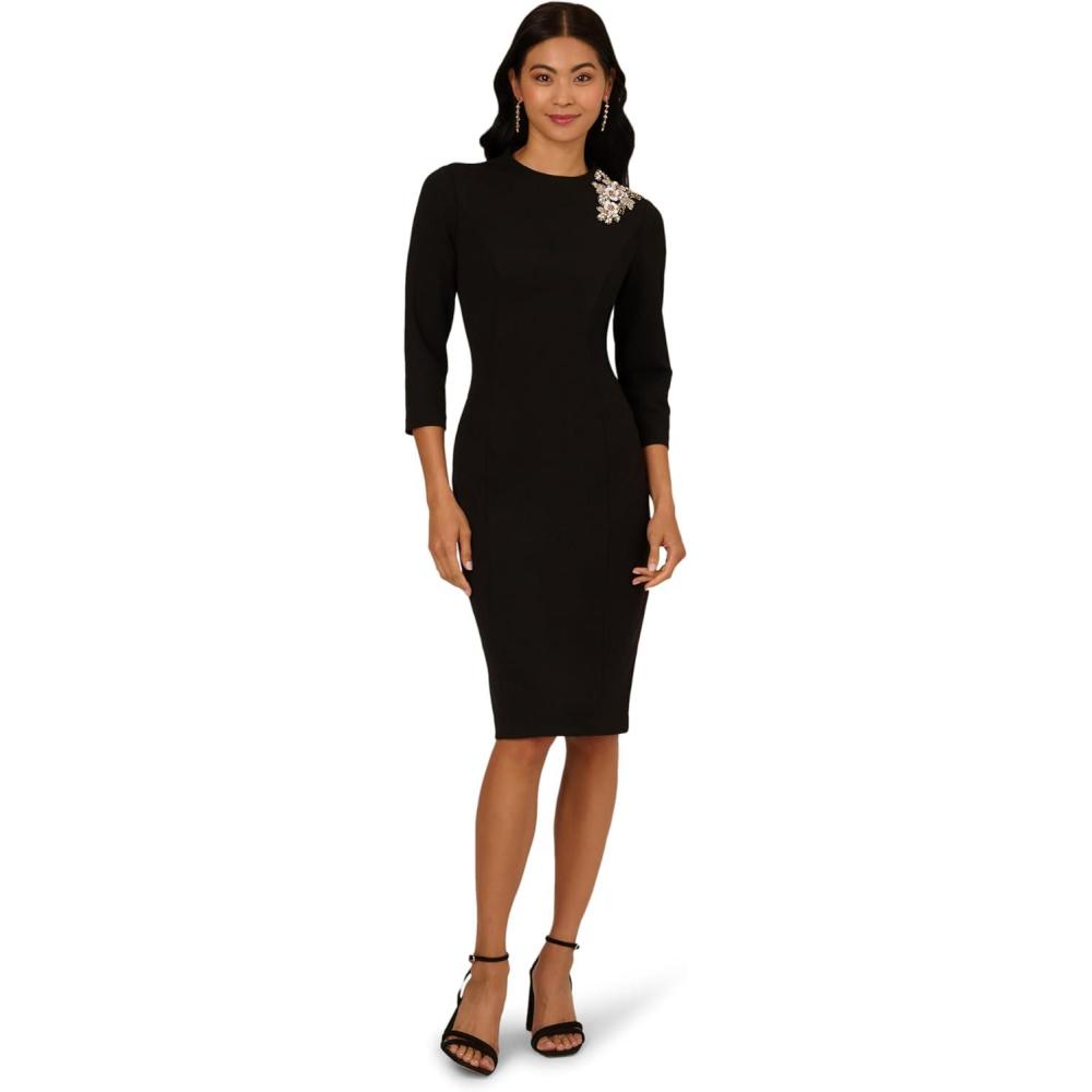 Adrianna Papell Women’s 3D Floral Mockneck Short Dress(Black)