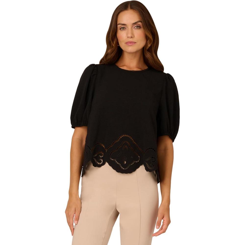 Adrianna Papell Women’s Airflow Eyelet Embroidered Woven Crop Top(Black)