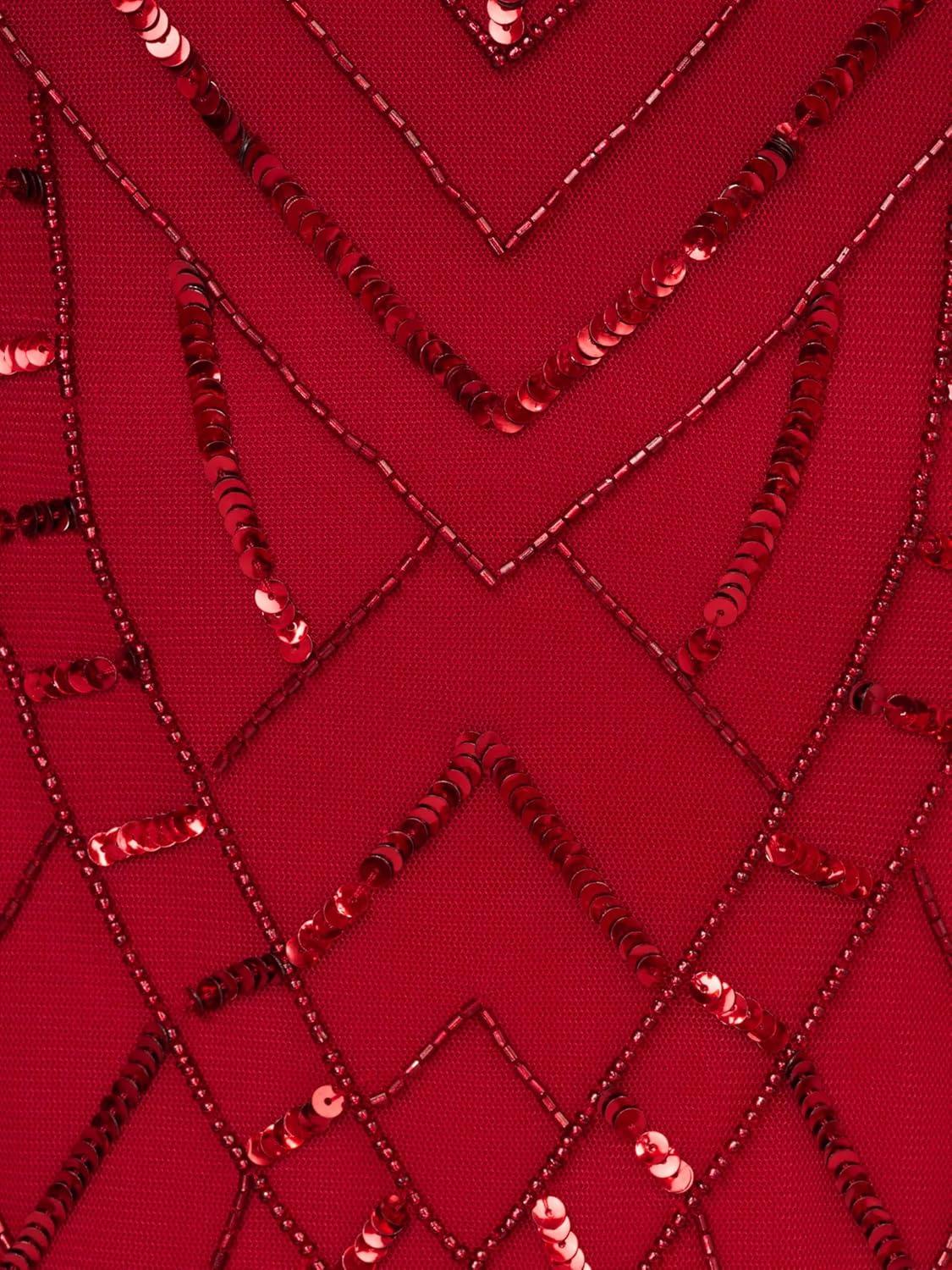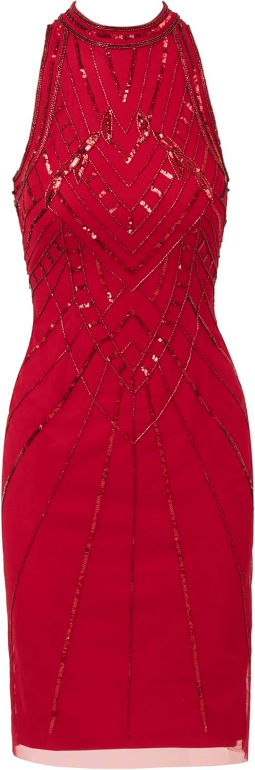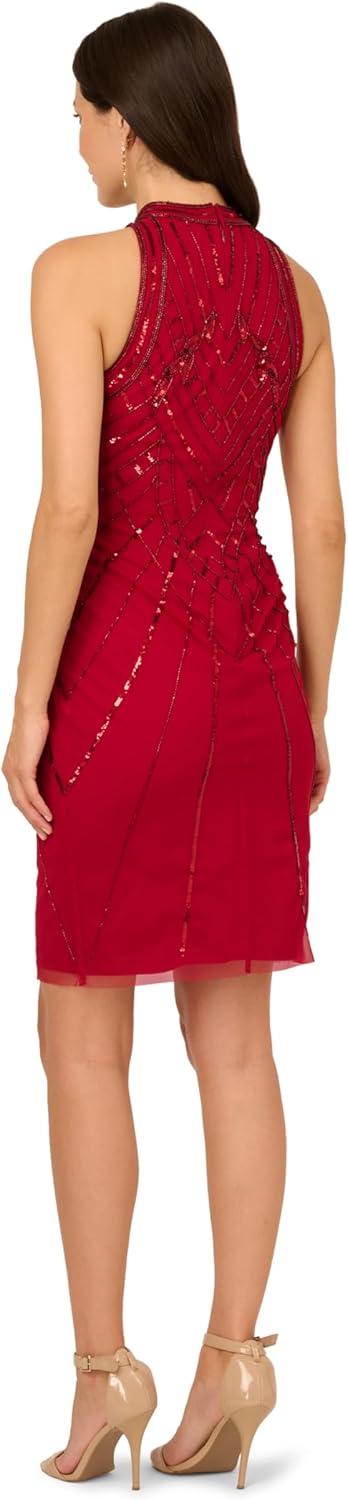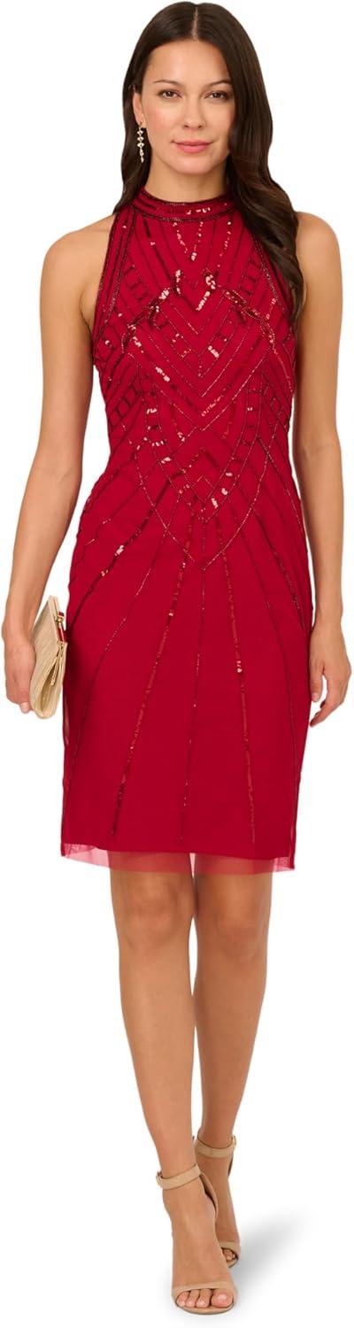 Adrianna Papell Womens Bead Mock Halter Dress(Cranberry)