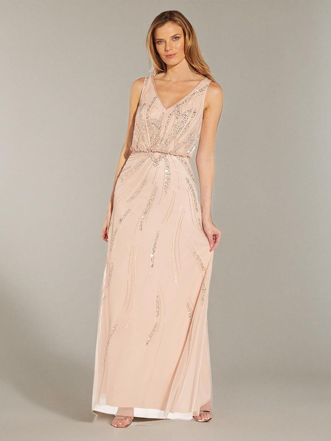 Adrianna Papell Women’s Beaded Blouson Dress(Blush)