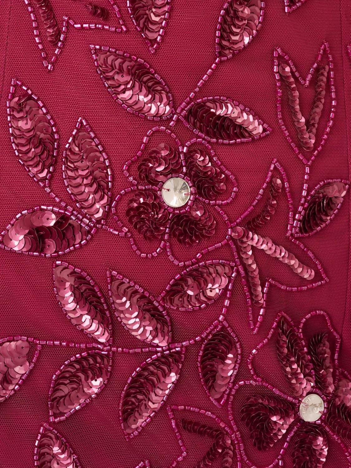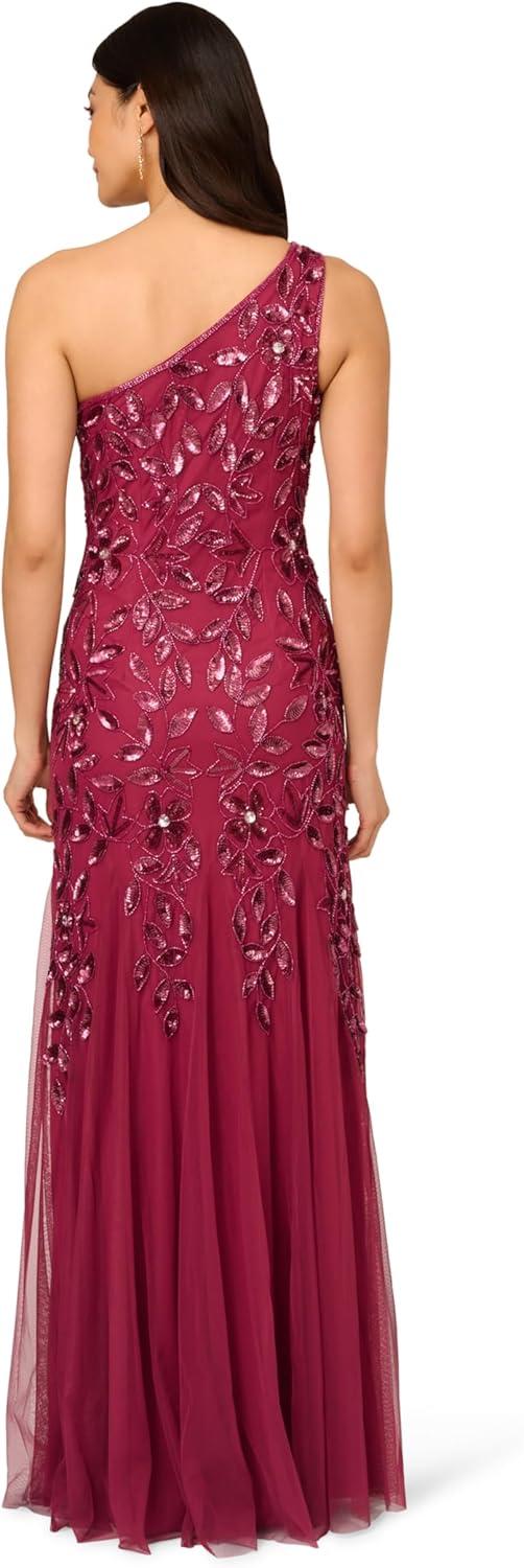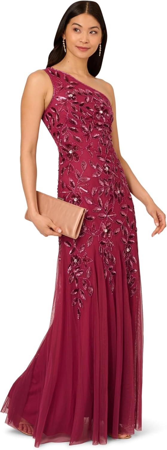 Adrianna Papell Womens Beaded Mesh Long Dress(Shiraz)