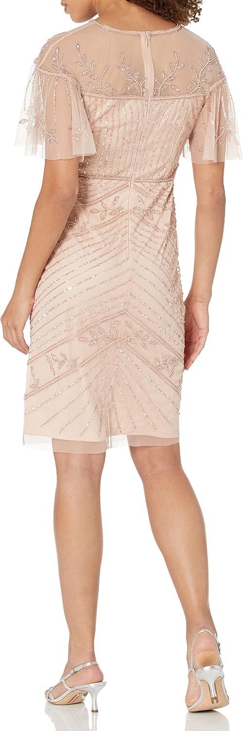 Adrianna Papell Womens Beaded Short Dress(Blush)