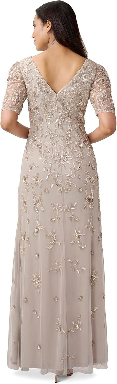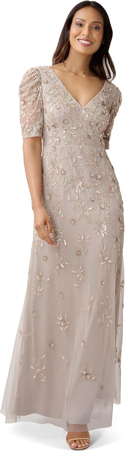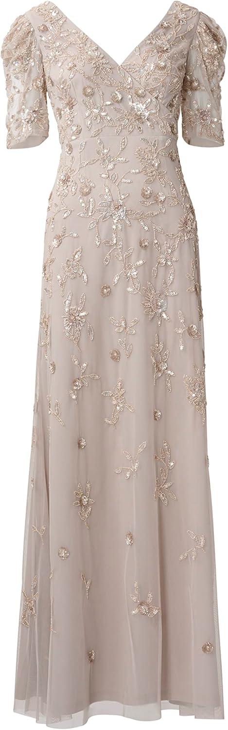 Adrianna Papell Womens Beaded Surplice Gown(Marble)