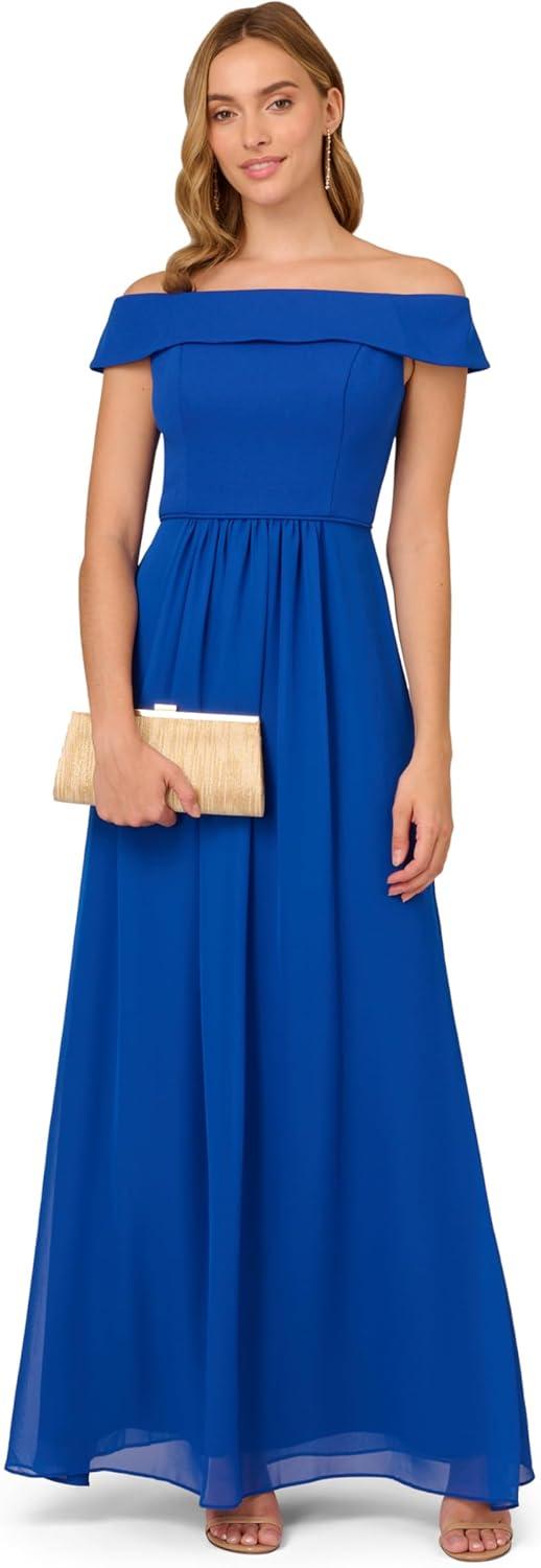 Adrianna Papell Womens Crepe Chiffon Gown(Violet Cobalt)