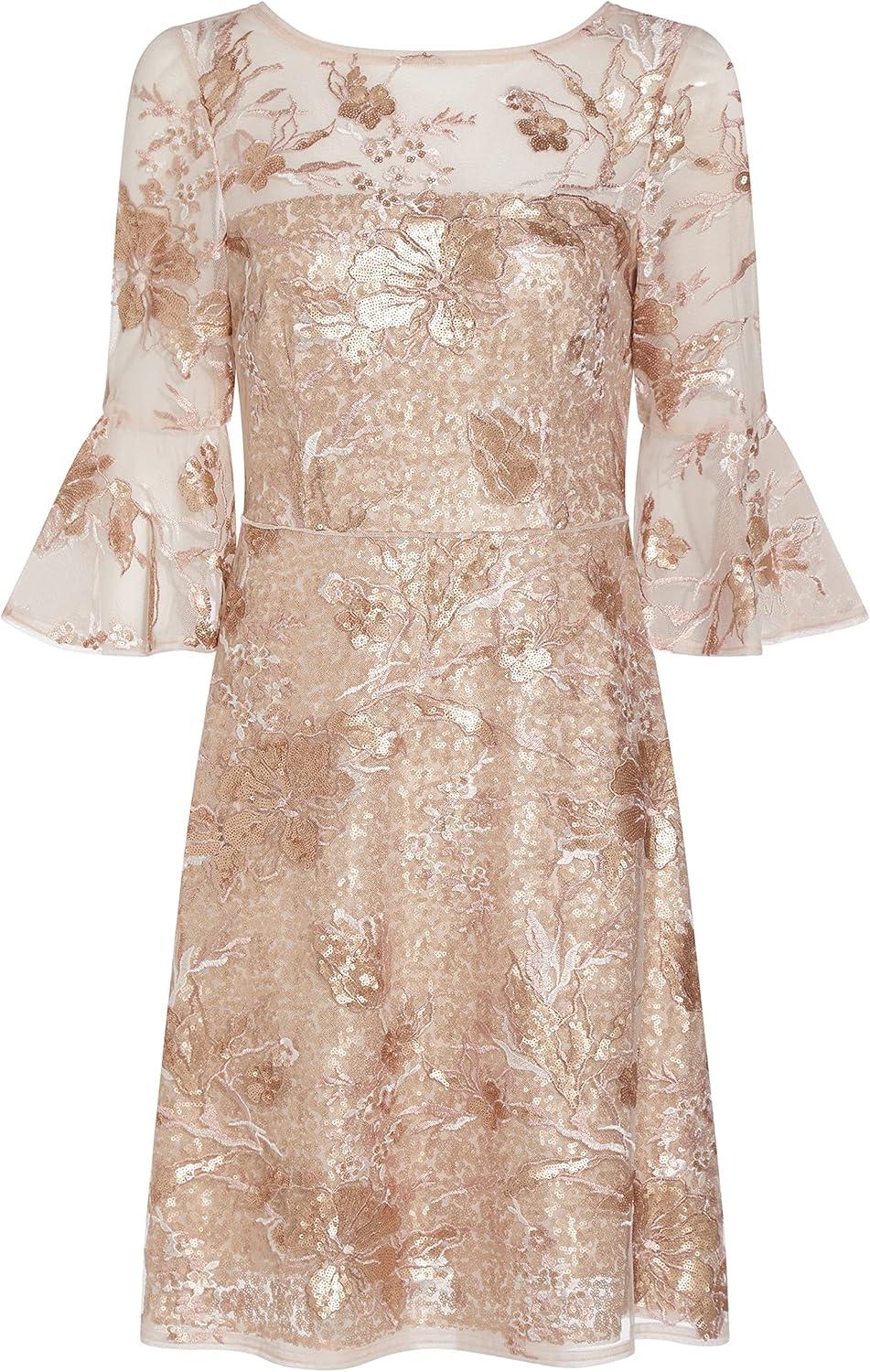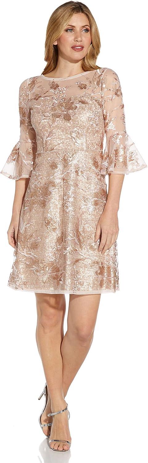 Adrianna Papell Womens Embroidered Sequin Cocktail(Joyful Blush)