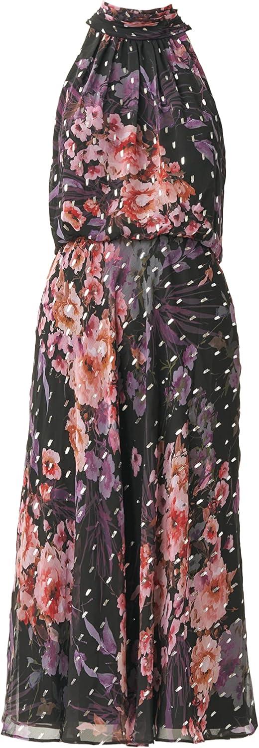 Adrianna Papell Womens Floral Chiffon Halter Dress(Black Multi)