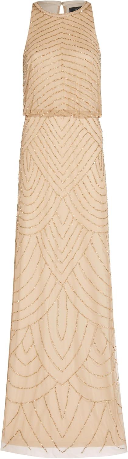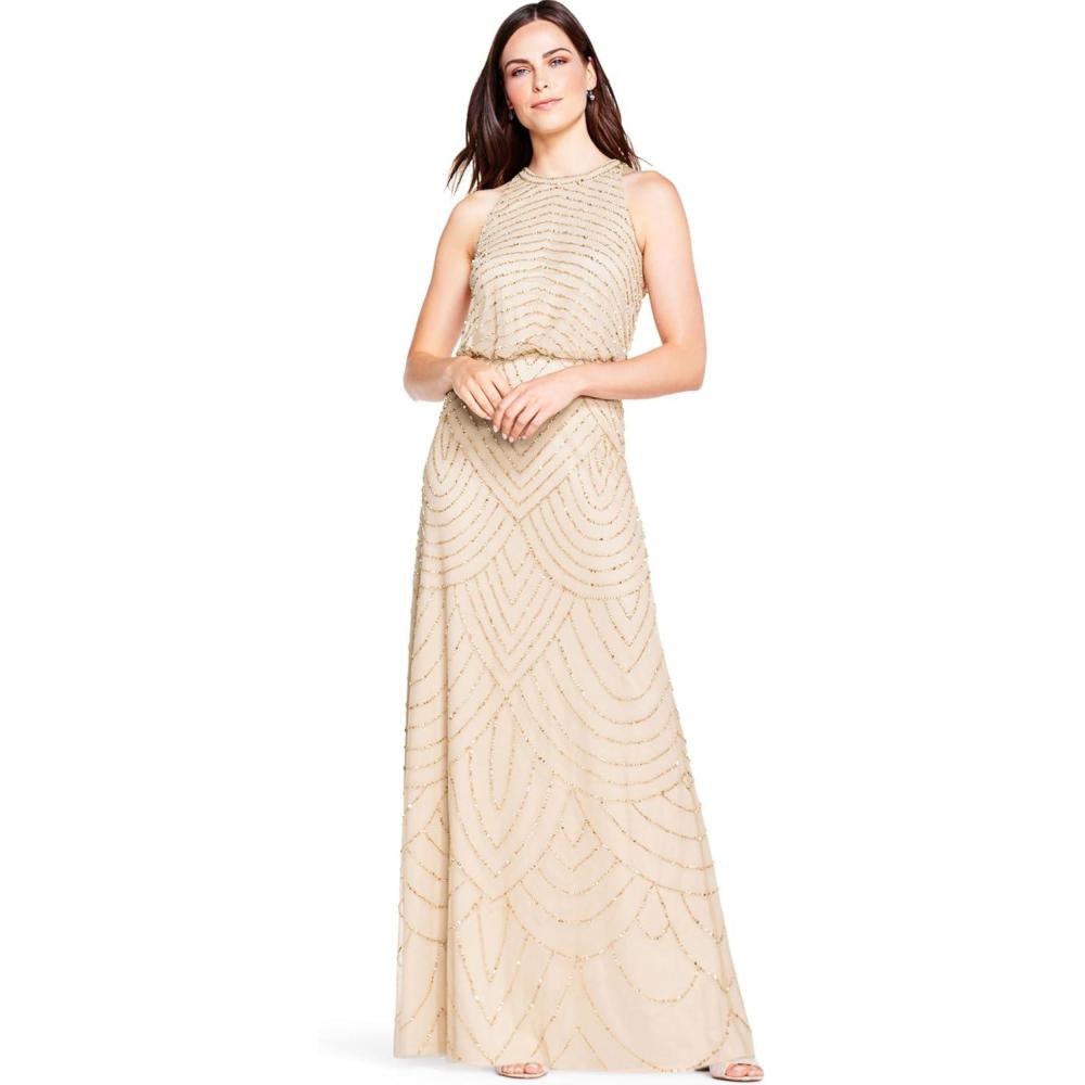 Adrianna Papell Womens Halter Blouson Beaded Gown(Champagne)