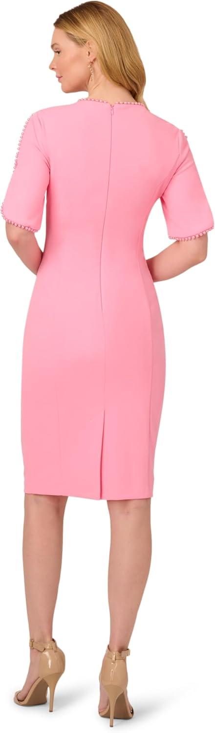 Adrianna Papell Womens Knit Crepe Pearl Midi Dress(Cherry Blossom)