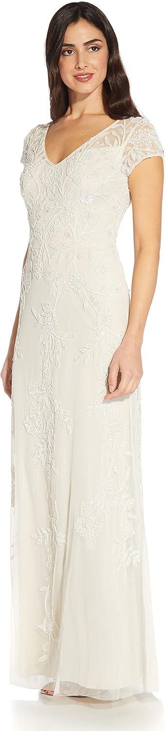 Adrianna Papell Women’s Long Beaded Dress(Ivory)