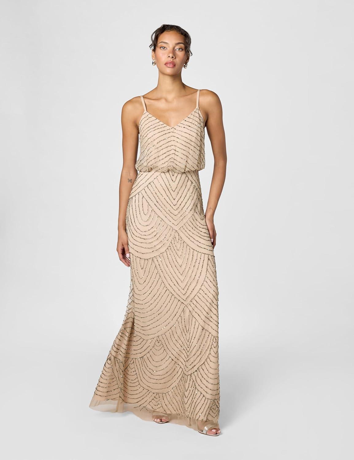 Adrianna Papell Women’s Long Blouson Dress(Taupe/Pink)