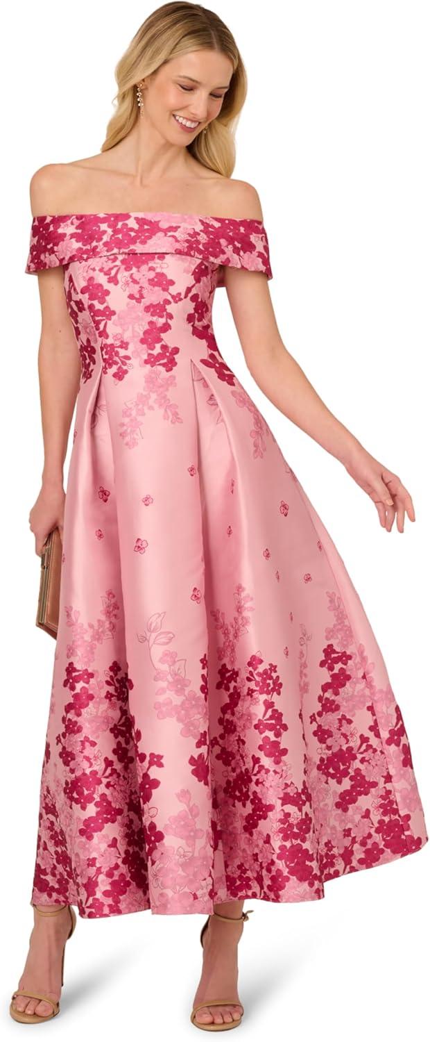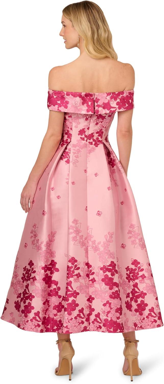 Adrianna Papell Womens Off-Shoulder Dress(Pink Multi)