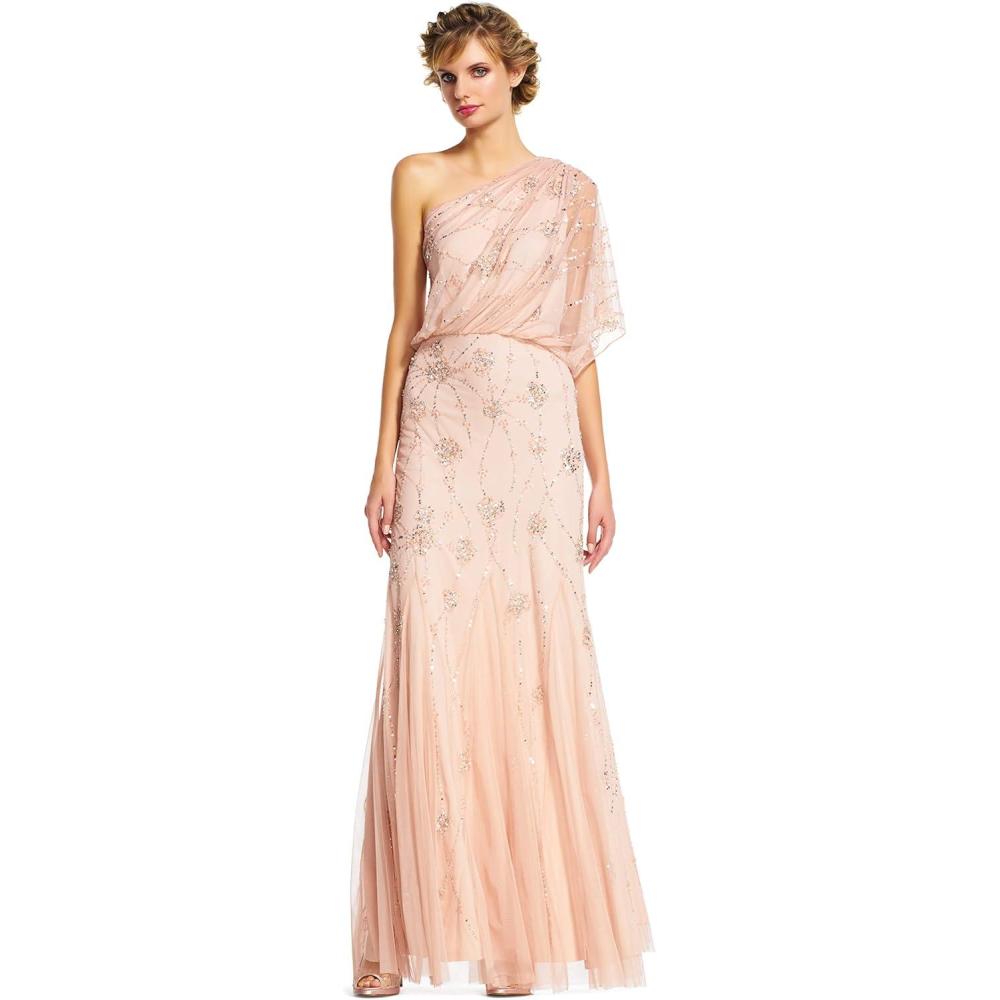 Adrianna Papell Womens One Shoulder Beaded Dress(Blush)