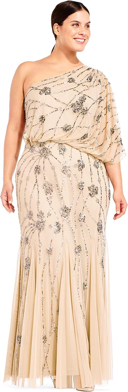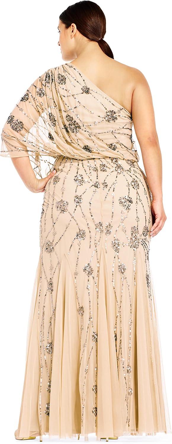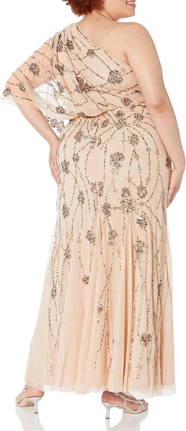 Adrianna Papell Women’s One Shoulder Beaded Dress(Dusty Navy)