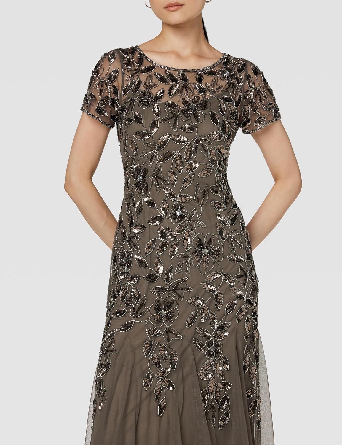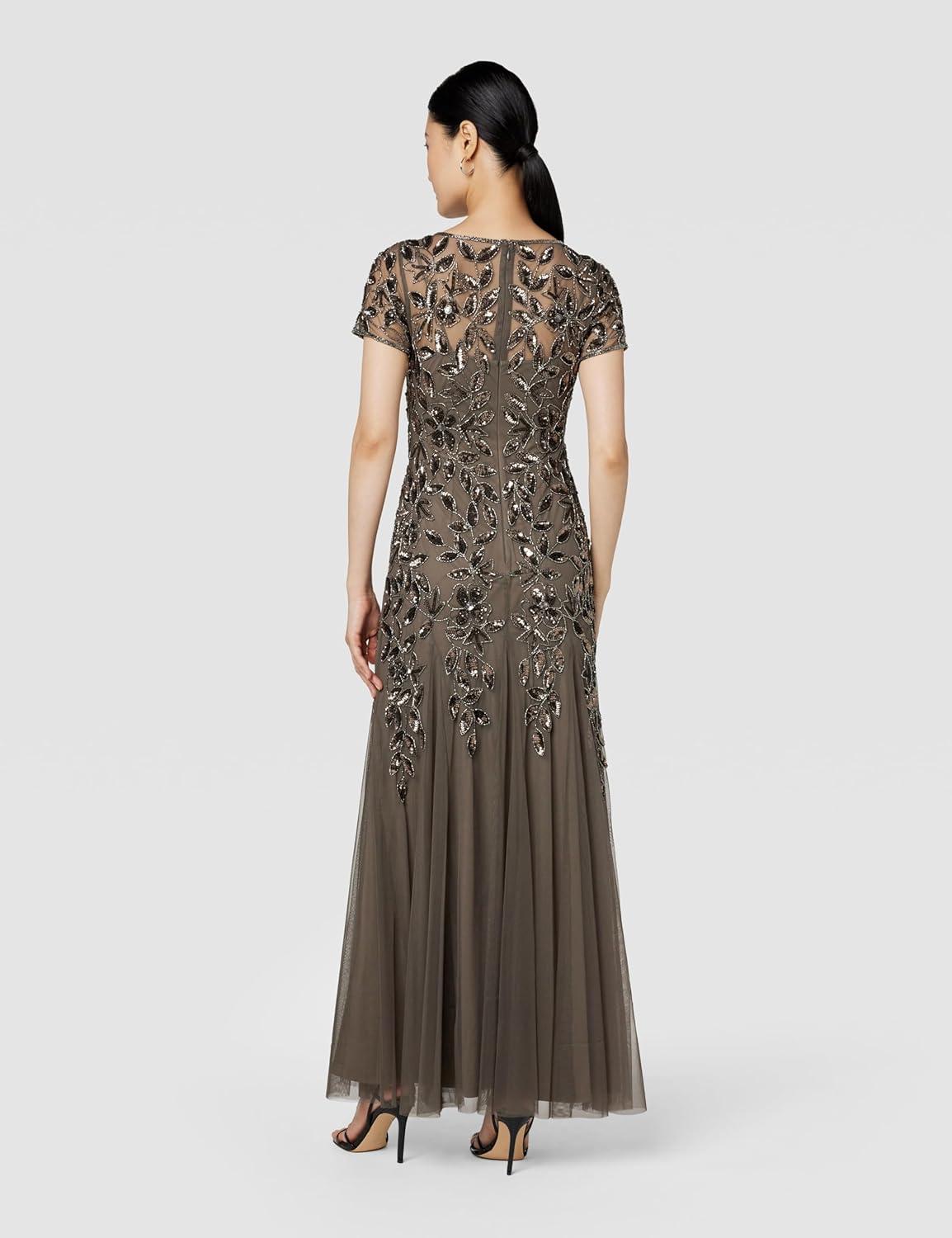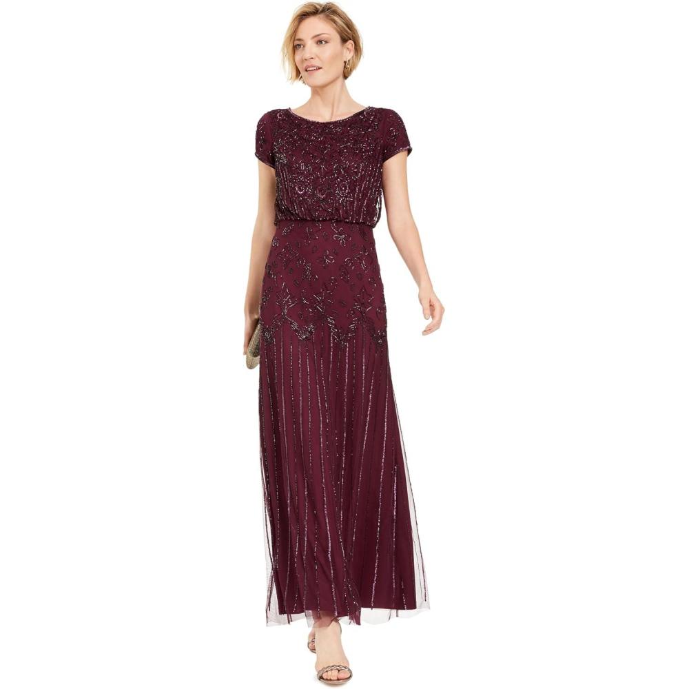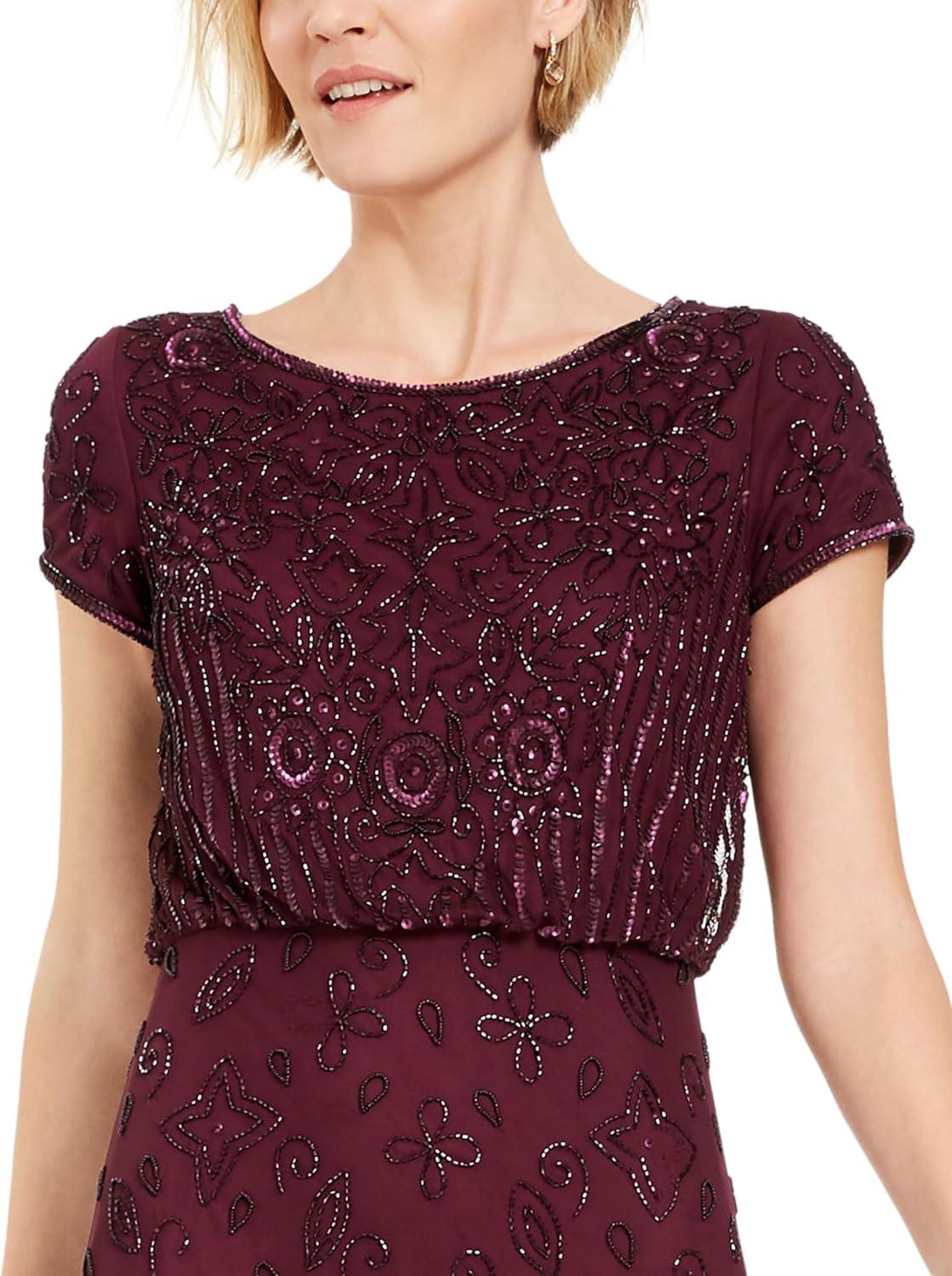 Adrianna Papell Women’s One Size Boat Neck Short Sleeve Blouson Beaded Gown(Cassis)
