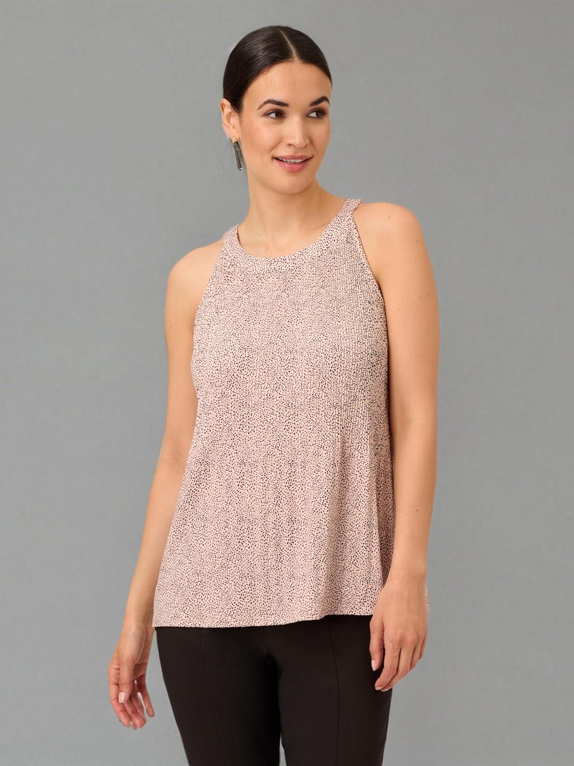 Adrianna Papell Women’s Printed Pleated Halter Top(Champagne Painted Dots)