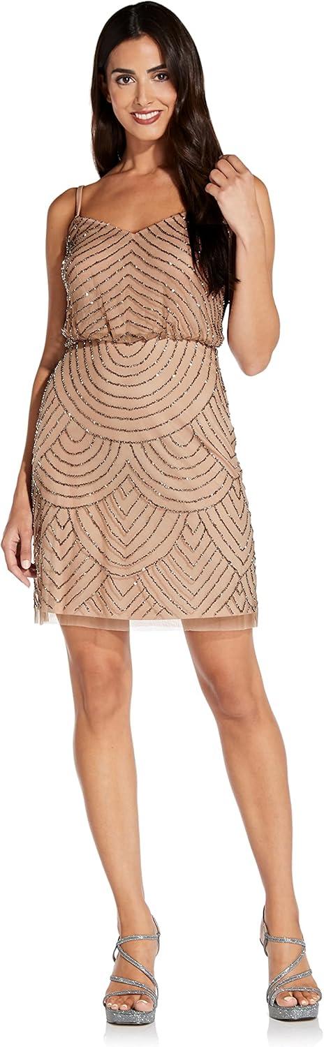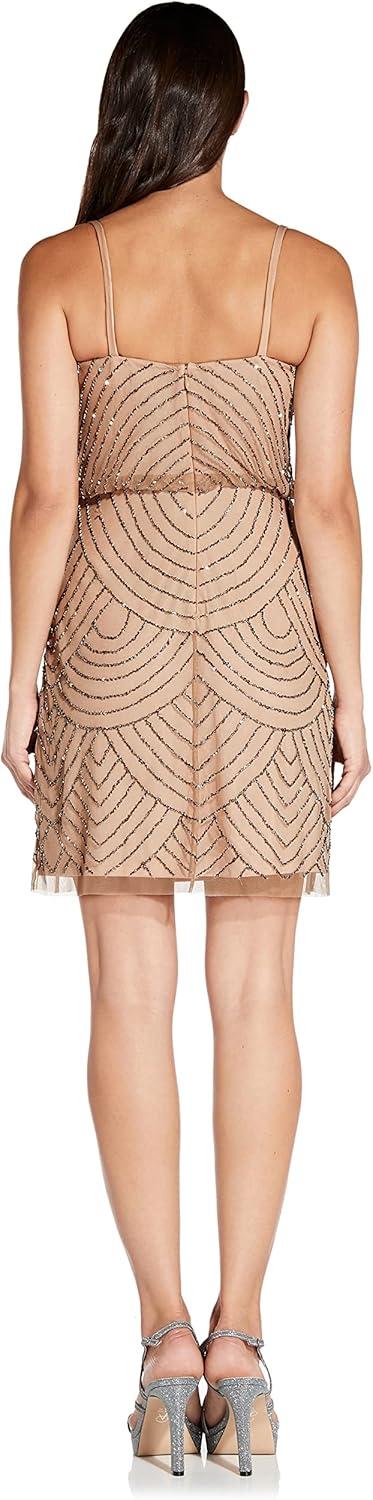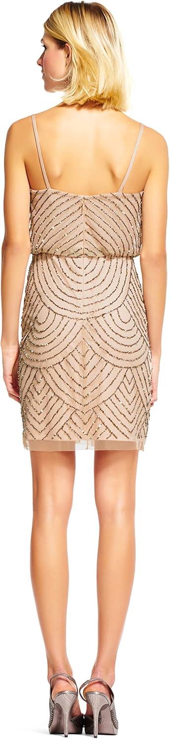 Adrianna Papell Women’s Short Blouson Beaded Cocktail Dress(Taupe/Pink)