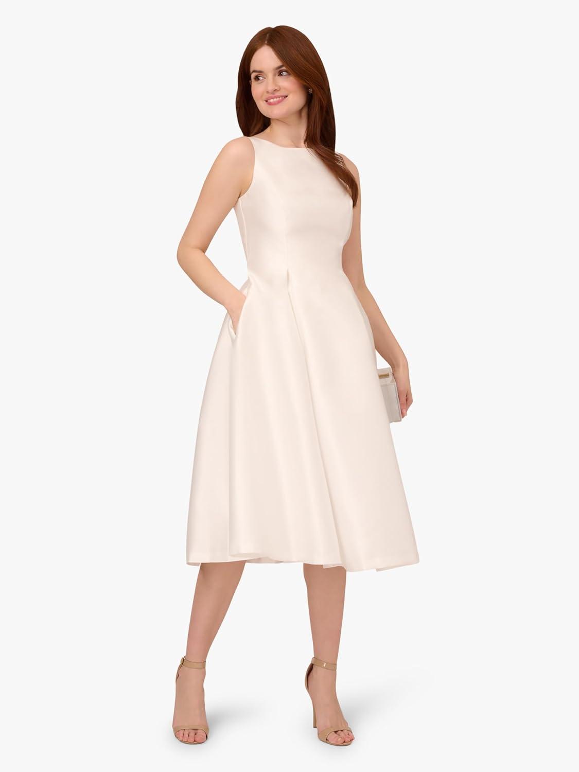 Adrianna Papell Women’s Sleeveless Tea Length Dress, Ivory, 6