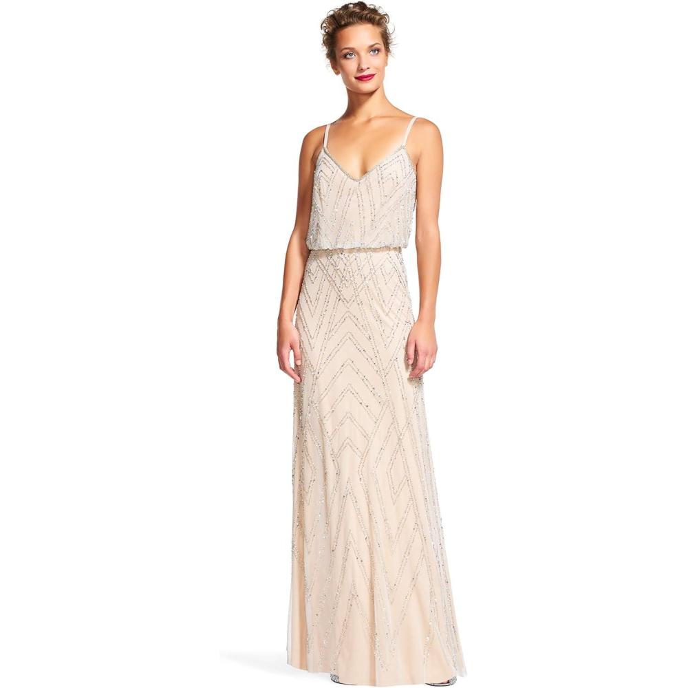 Adrianna Papell Womens Slvlss Blouson Beaded Gwn(Silver/Nude)
