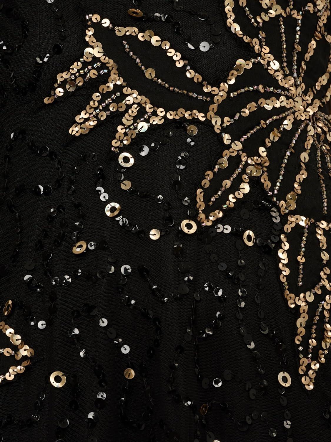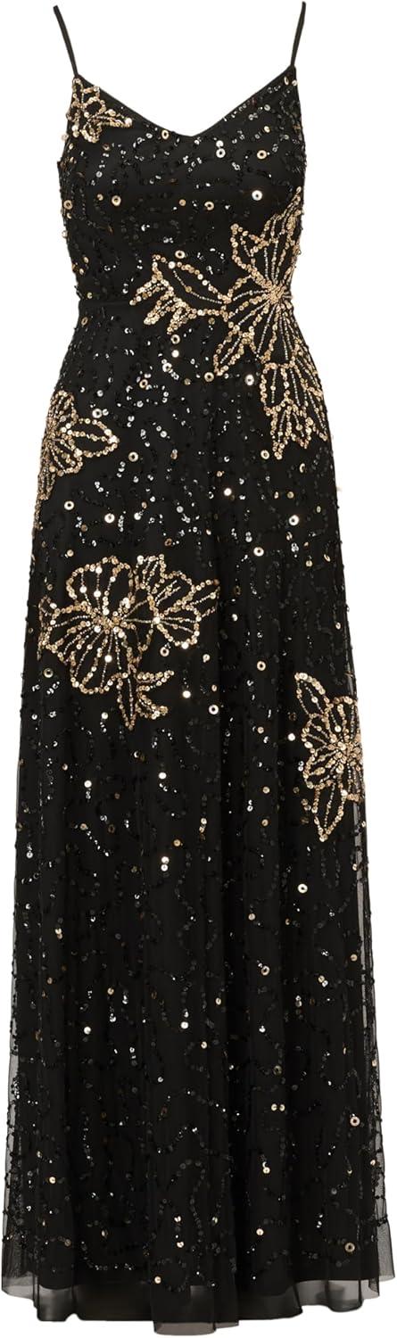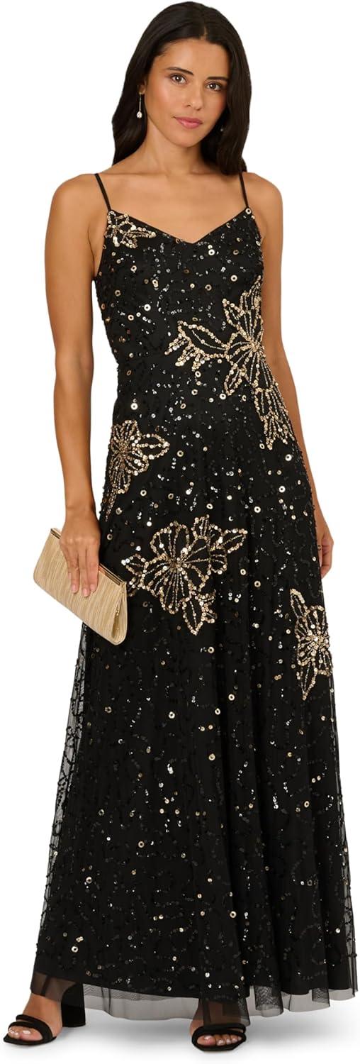 Adrianna Papell Women’s Bead Mesh Flower Dress(Black/Gold)