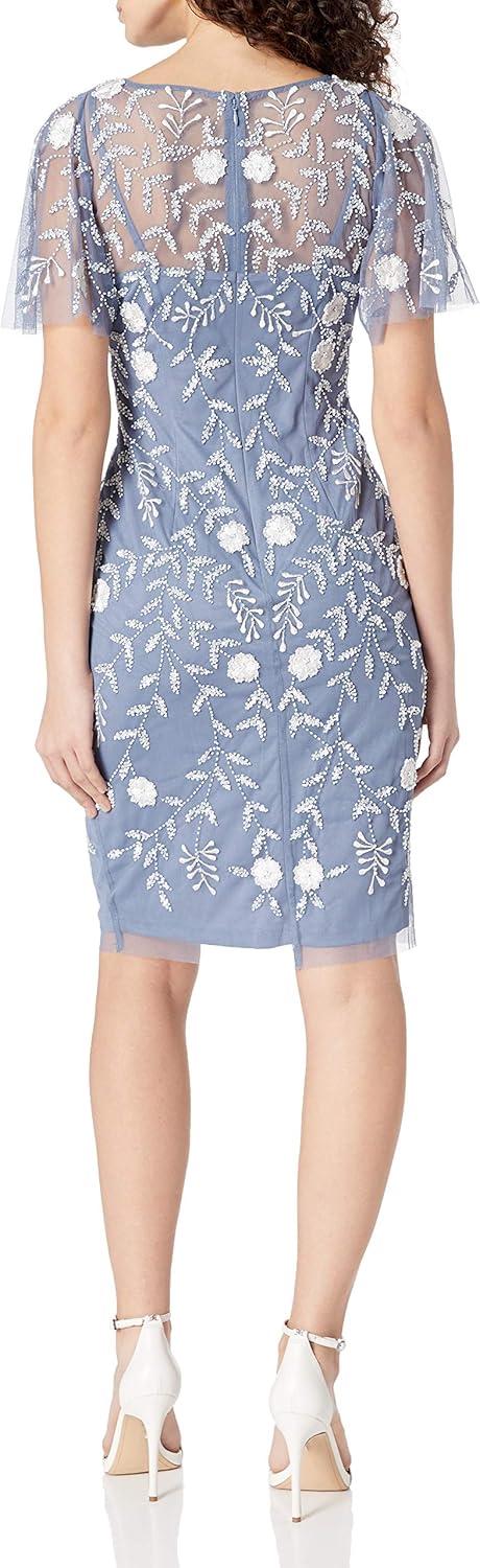 Adrianna Papell Womens Beaded Short Dress(Dusty Blue)