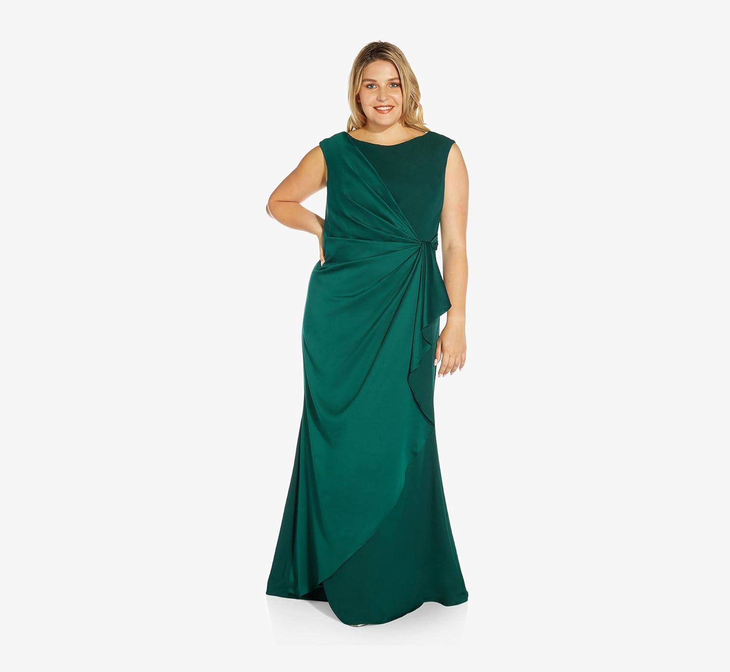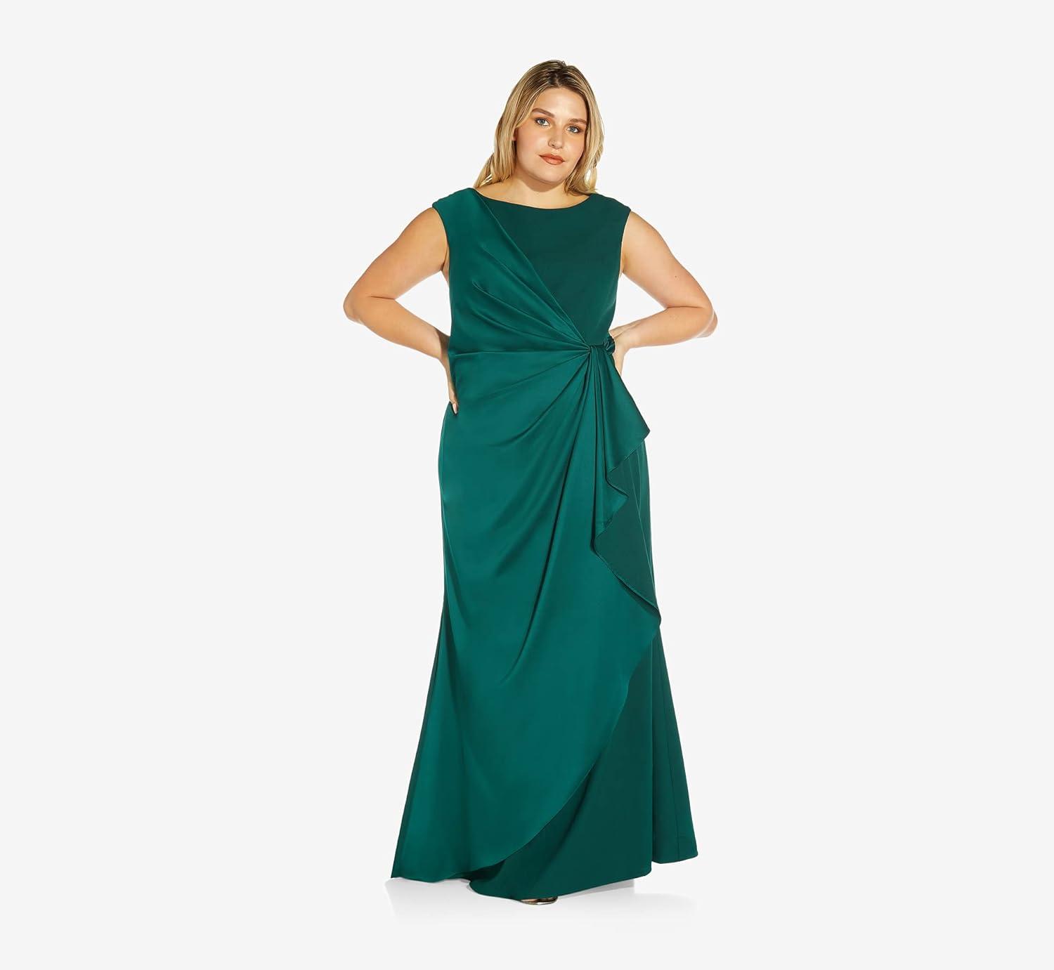 Adrianna Papell Womens Satin Crepe Gown(Dark Jade)