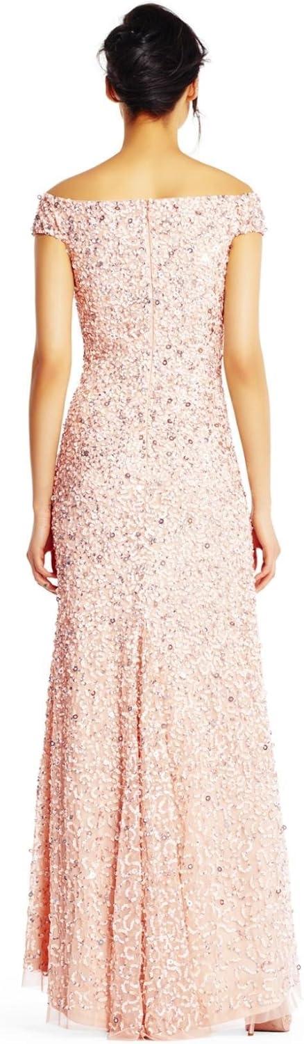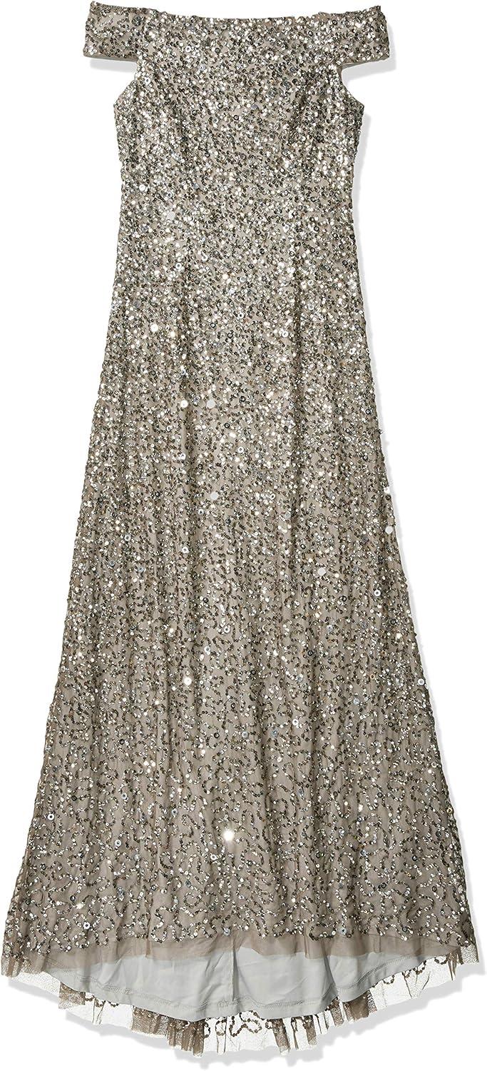 Adrianna Papell Women’s Off The Shoulder Crunchy Bead Gown(Lead)