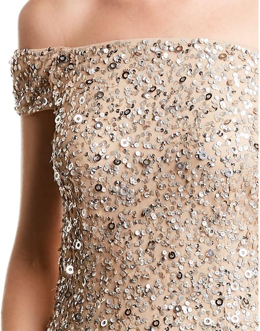 • Adrianna Papell Women’s Off The Shoulder Crunchy Bead Gown(Champagne)