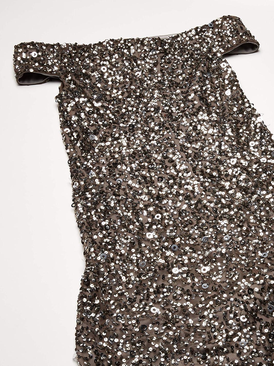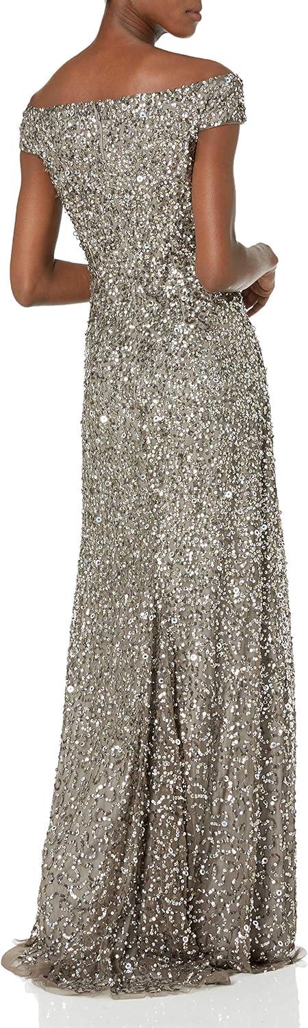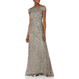 • Adrianna Papell Women’s Off The Shoulder Crunchy Bead Gown(Lead)