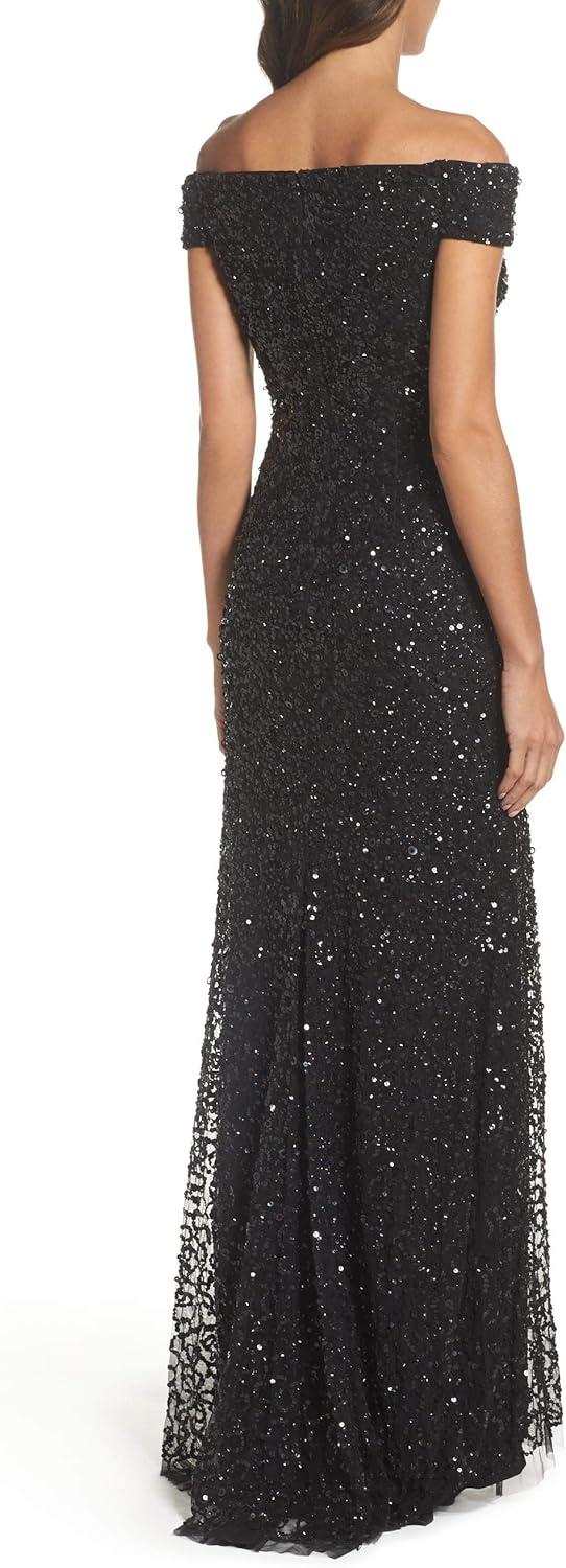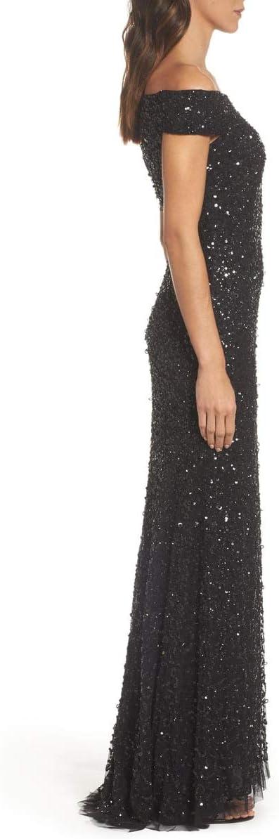 Adrianna Papell Women’s Off The Shoulder Crunchy Bead Gown(Black)