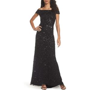 • Adrianna Papell Women’s Off The Shoulder Crunchy Bead Gown(Black)